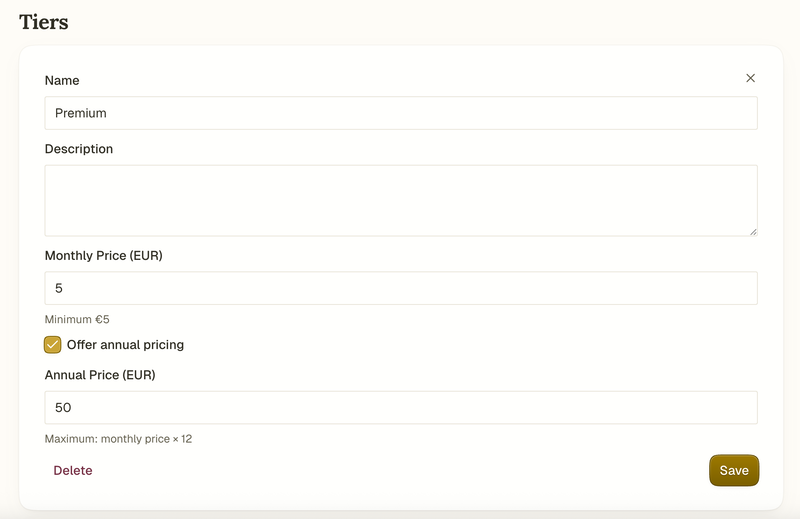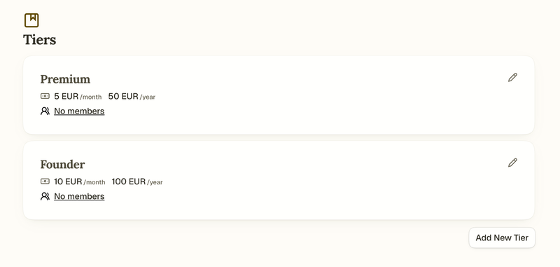 Intenta no crear massa nivells, ja que pot confondre els nous lectors. Una o dues opcions clares (per exemple, «Subscriptor» i «Accés complet» o «Club de lectura» i «Sala de l'escriptor») sol ser suficient per començar.