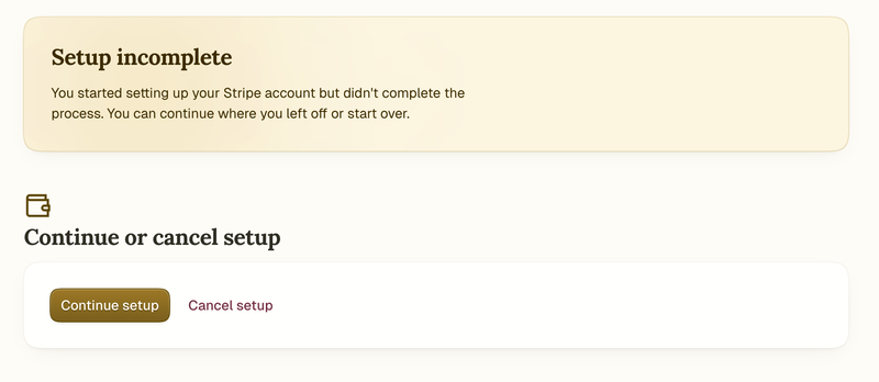 Si t'atures a la meitat de la configuració, pots tornar-hi més tard i fer clic a Continua la configuració a la pàgina de Monetització.