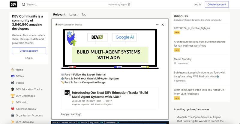 Dev.to ist eine kostenlose Publishing-Community für Entwickler. Gut geeignet, wenn man ohne Monetarisierungsdruck für ein technisches Publikum schreiben möchte.